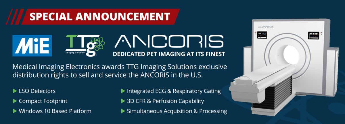 PITTSBURGH, PA (September 24, 2020) – TTG Imaging Solutions, LLC (TTG), a national leader in nuclear medicine and molecular imaging solutions, and Medical Imaging Electronics, Inc. (MiE), a leading provider of new and remanufactured nuclear medicine and molecular imaging systems, are proud to announce a strategic partnership that awards TTG the exclusive distribution rights to sell and service the MiE ANCORIS, a new, FDA-approved dedicated PET imaging system. This system is a great adjunct to TTG’s other sales and service offerings and makes TTG the first and only MiE ANCORIS distribution partner in the United States.