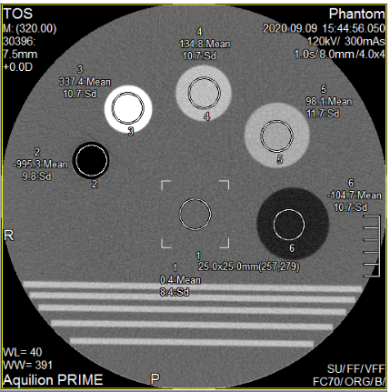 This image shows a typical QA scan using the TOS phantom supplied with each scanner.