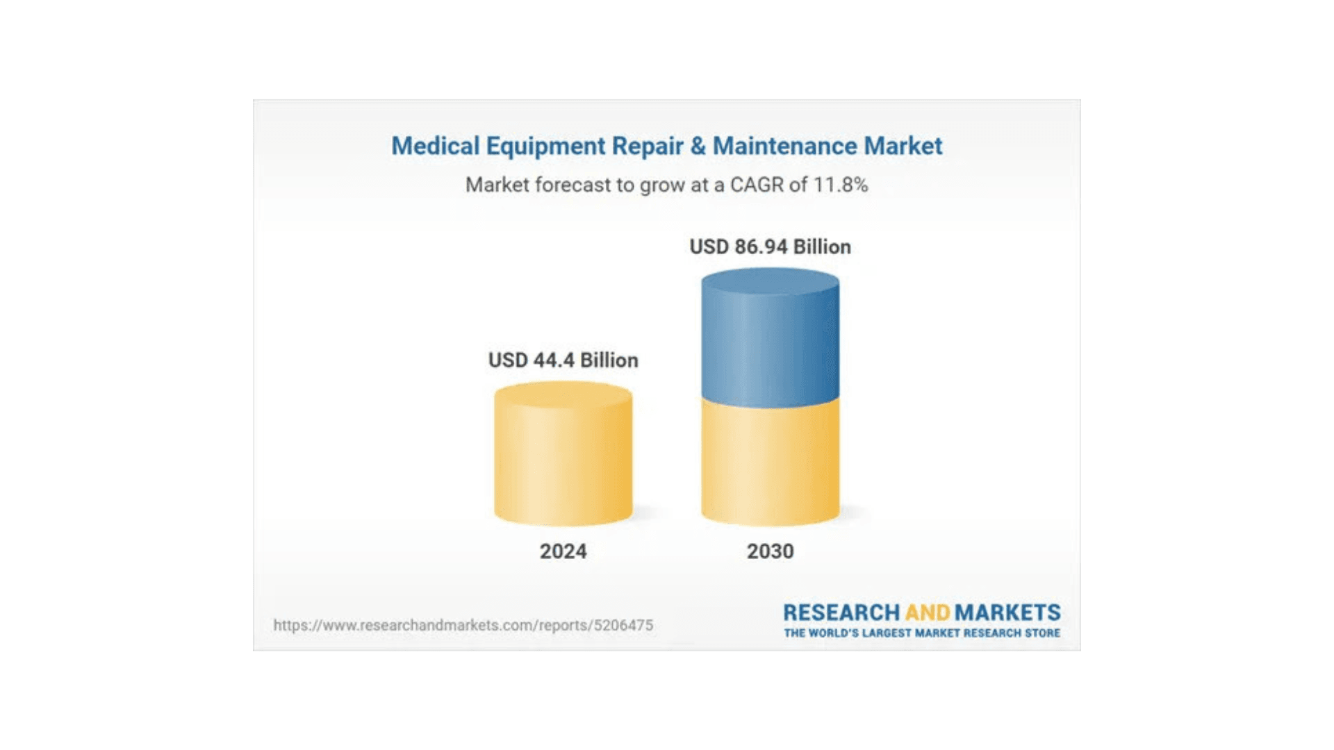 The Medical Equipment Repair & Maintenance Market grew from $39.73 billion in 2023 to $44.40 billion in 2024. It is expected to continue growing at a CAGR of 11.83%, reaching $86.94 billion by 2030.