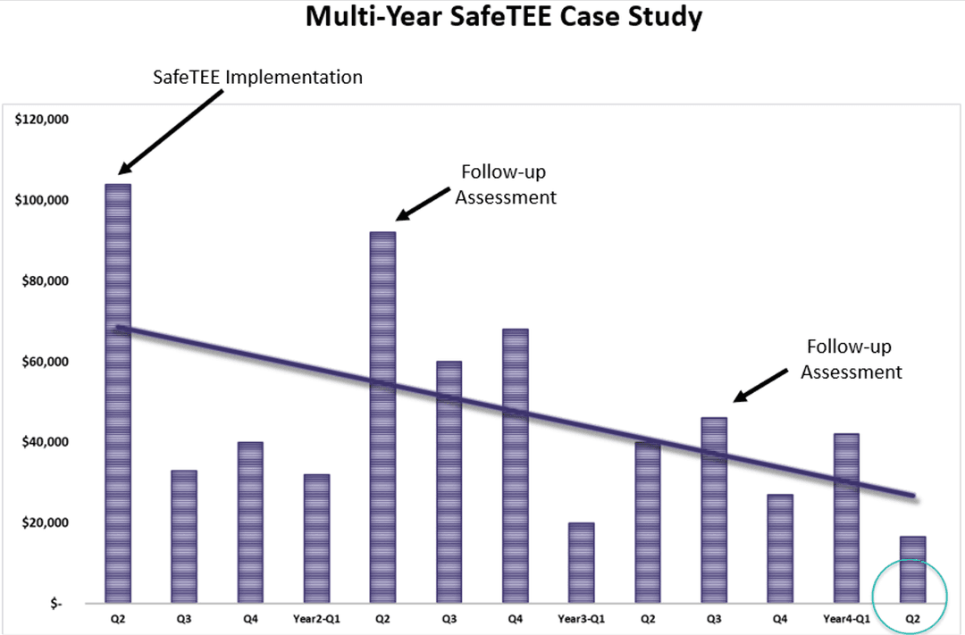 By implementing SafeTEE, facilities of all sizes can drastically reduce their support costs, capital expenses, and overall cost of ownership for TEE probes. Innovatus’ pilot customer supported 10-TEE probes yet experienced 28 catastrophic failures stemming from trauma and gross fluid invasion, totaling over $250,000 in a single year.” By modifying key steps in cross-functional processes, this client achieved the following results in less than 6-months: