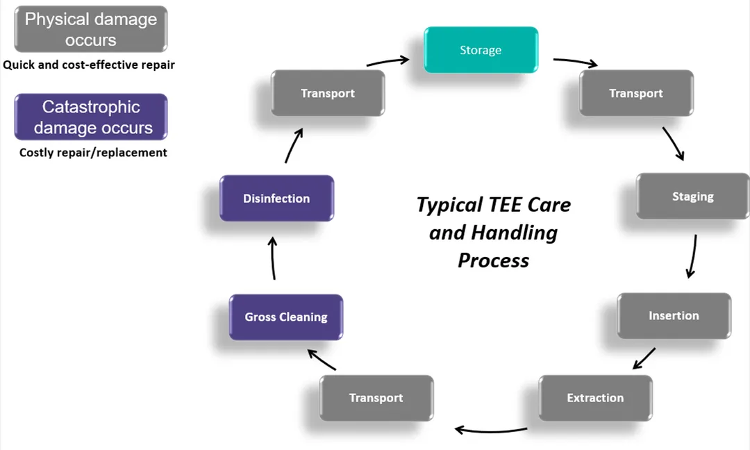 SafeTEE involves examining the entire TEE probe care and handling process to identify current state, comparing current state to industry best-practices, and then implementing key opportunities for improvement. Managers from cross-functional teams are engaged, and end-users, clinicians, and technicians are active participants in the process.
